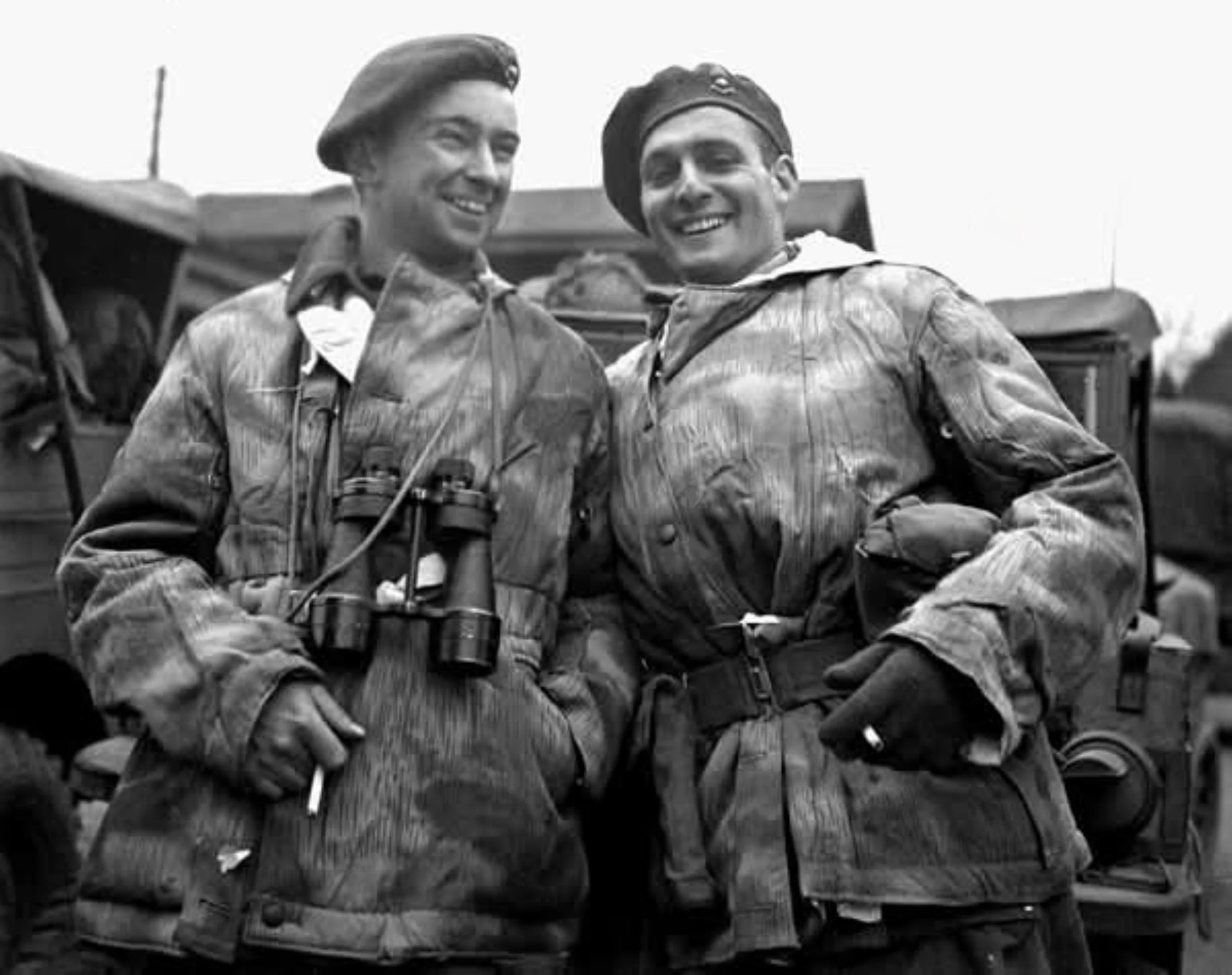 Canadian Soldiers wearing German winter camouflage uniforms “liberated” from the E.Reitz Uniformwerke depots in Antwerp